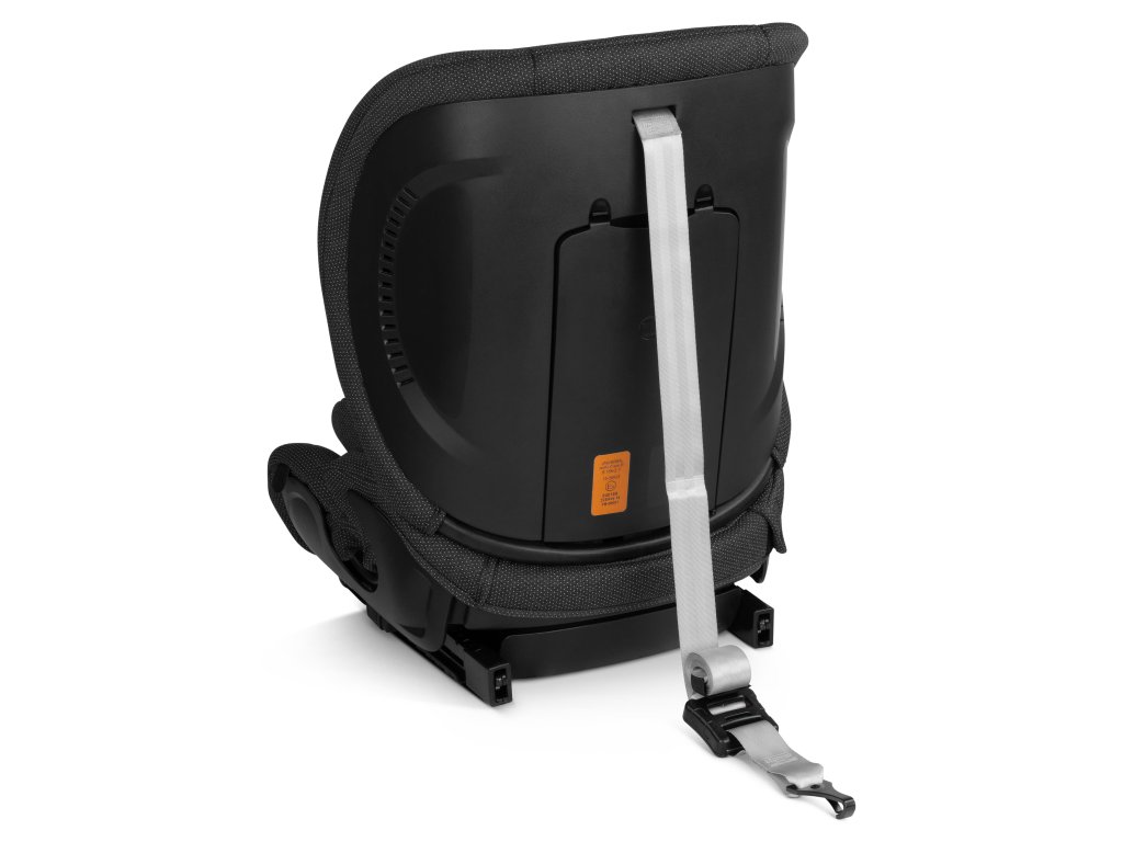 Uchycení horního popruhu – popruh natažený přes opěradlo zadního sedadla a ukotvený v držáku – navíc poskytuje ještě větší bezpečnost. U obou upevňovacích systémů barevné displeje ukazují, zda je vše správně umístěno. Červená znamená, že je potřeba něco upravit. Zelená znamená, že je vše v pořádku.