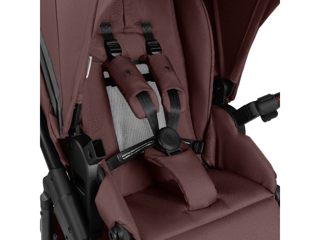 Kočárek je promyšlený i z hlediska manipulace. Ergonomické výškově nastavitelnou rukojeť, můžete snadno nastavit tak, aby vyhovovala vaší výšce. Chytrý pětibodový systém bezpečnostních pásů HappyBelt® se snadno nastavuje díky praktickému magnetickému zapínání a plynulému nastavení pásů, přístupnému zepředu.
