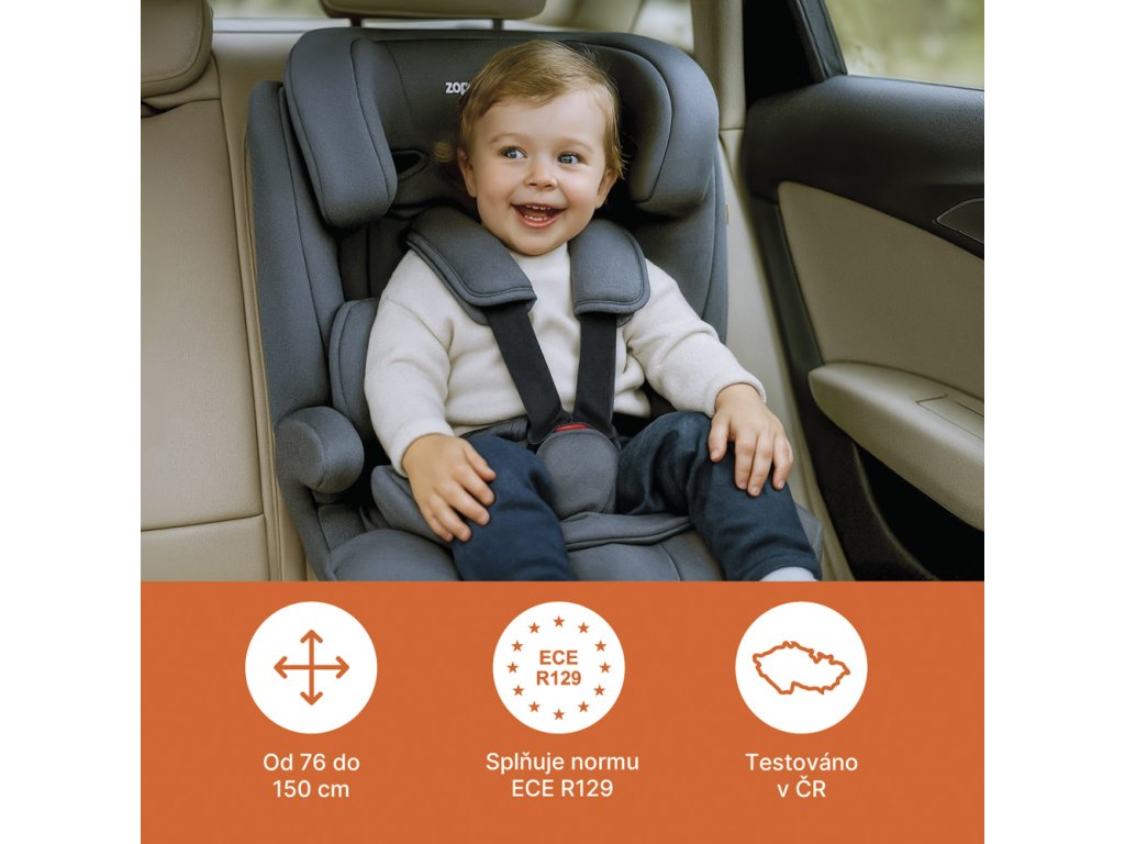 Zopa Alfa i-Size Isofix je univerzální autosedačka, která poskytuje maximální ochranu po celou dobu, co ji vaše dítě bude potřebovat – od 15 měsíců až do 12 let (od 76 do 150 cm). Splňuje nejpřísnější bezpečnostní normu ECE R129 (i-Size), což vám dává jistotu, že vaše dítě cestuje v bezpečí.