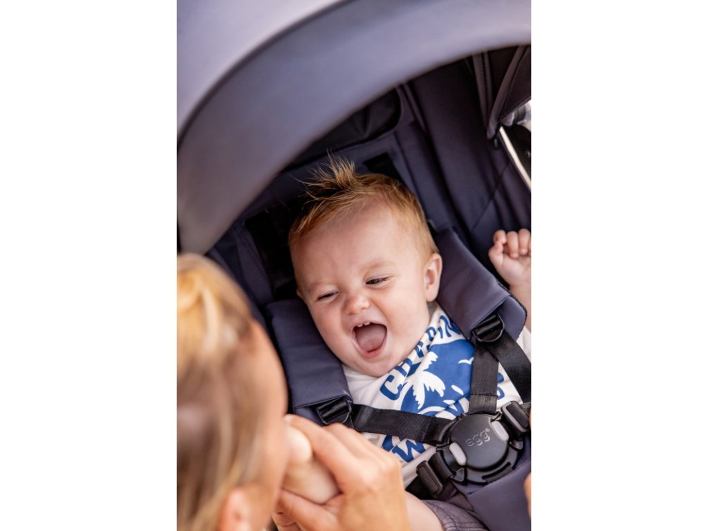 Pro maximální pohodlí od prvního dne nabízí egg® Sky nastavitelnou opěrku zad s polohou zcela do lehu, díky čemuž je vhodný od narození až do 22 kg. Sedací část je vybavena velkým ventilačním oknem, jednou rukou nastavitelnou opěrkou noh a bezpečnostním pásem s rychlým nastavením výšky. Ramenní polstrování a pětibodová magnetická přezka zajišťují jednoduché, bezpečné a intuitivní připoutání.