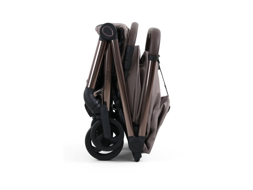 Typické prvky egg® najdete na každém detailu – od elegantních křivek a dezénu kol až po ručně šitou koženkovou rukojeť (s výškou 105 cm) a odnímatelné madlo před dítětem. Každý detail byl pečlivě promyšlen pro moderní rodiče, kteří oceňují spojení designu a funkčnosti.