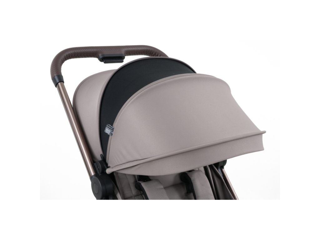 Prodloužená stříška ukrývá UV síťovaný panel, který poskytuje ochranu UPF 50+ a zároveň udržuje dítě v chladu a pohodlí.