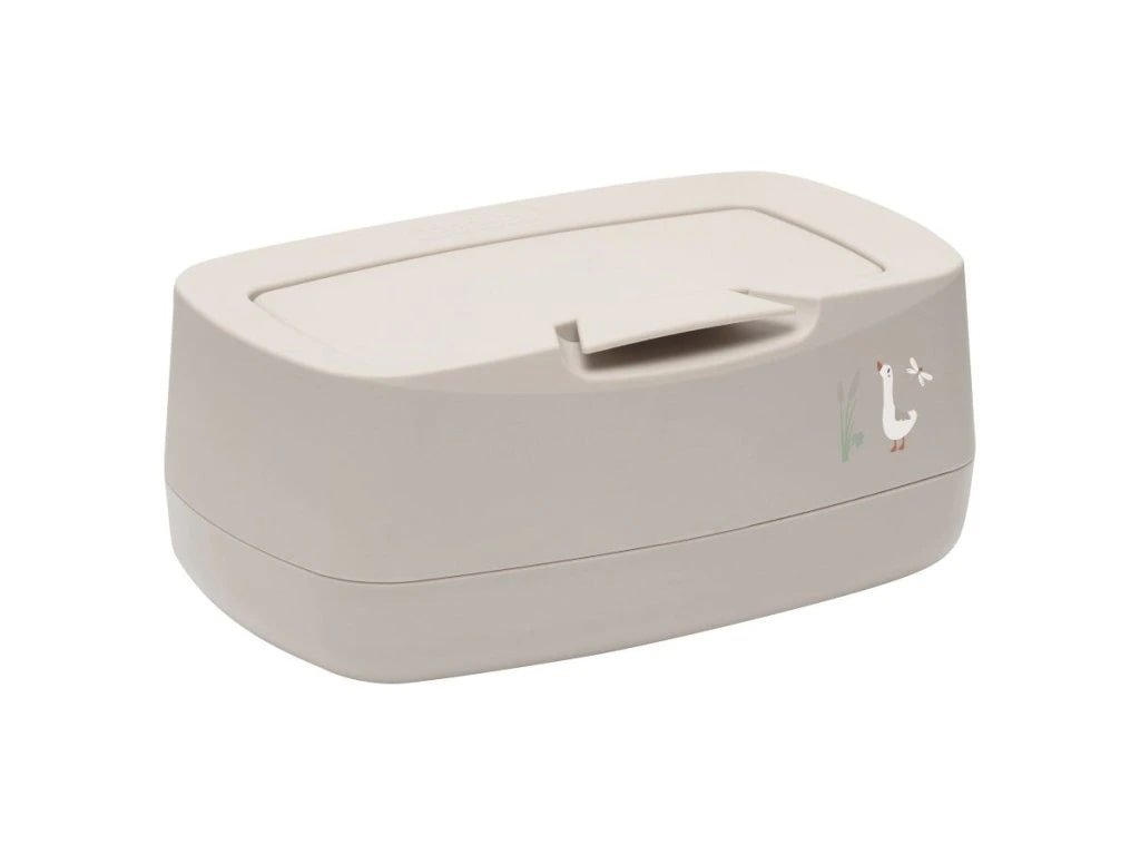 Univerzální box na vlhčené ubrousky v moderním designu s ochranou proti vyschnutí. Krásný doplněk na přebalovací komodu. Je lehce uzavíratelný, aby se předešlo vysychání ubrousků. Box lze otevřít jednou rukou. Speciální otevírání se dále postará, že další ubrousek budete moci bez námahy vytáhnout ven a ihned použít.