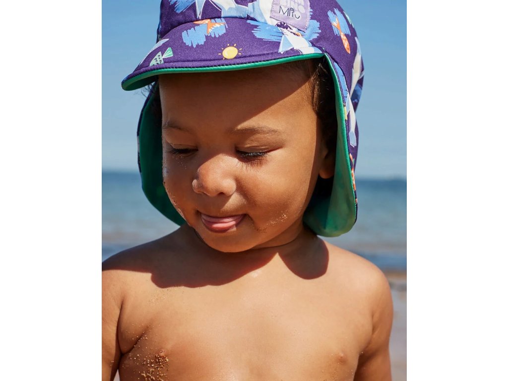Oboustranná dětská koupací čepice poskytuje perfektní ochranu pro malé námořníky a objevitele! Ochraňte své dítě s naši ochrannou čepicí s UV 40+.