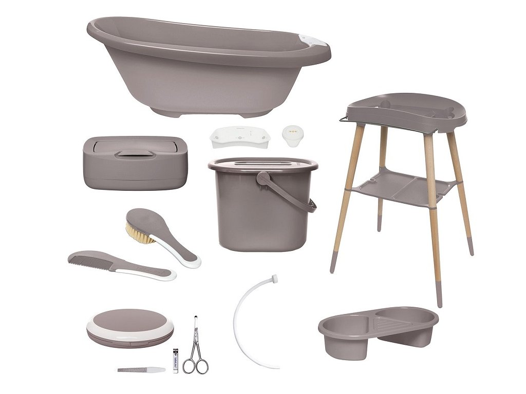 Sada obsahuje: digitální vaničku Sense Edition a luxusní stojan z lakovaného buku, kyblík na plenky, sadu na manikúru, hřeben a kartáč, misku na mytí, box na vlhčené ubrousky a vypouštěcí hadici. Zkrátka vaše kompletní vybavení pro péči a koupání!