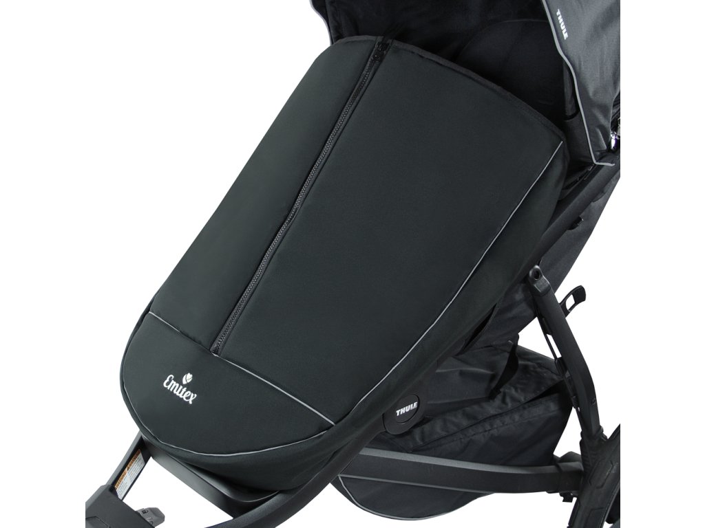 Zip umístěný ve středu nánožníku umožňuje rychlé vložení a vytažení dítěte z kočárku.
