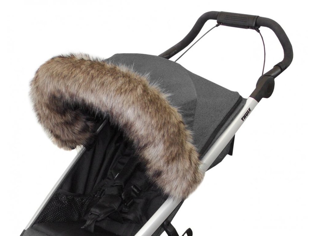 Univerzální límec z umělé kožešiny vhodný na boudičku kočárku. UNI límec je vyroben jako dekorativní doplněk kočárku. Límec má po stranách všitou gumu, na každém konci límce jsou plastové spony sloužící jako úchyty. Snadné a jednoduché upevnění na stříšku kočárku.