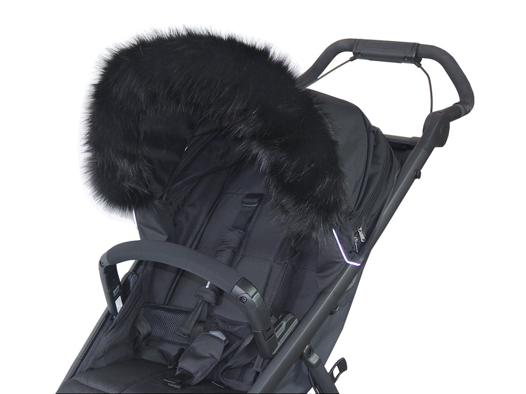 Univerzální límec z umělé kožešiny vhodný na boudičku kočárku. UNI límec je vyroben jako dekorativní doplněk kočárku. Límec má po stranách všitou gumu, na každém konci límce jsou plastové spony sloužící jako úchyty. Snadné a jednoduché upevnění na stříšku kočárku.