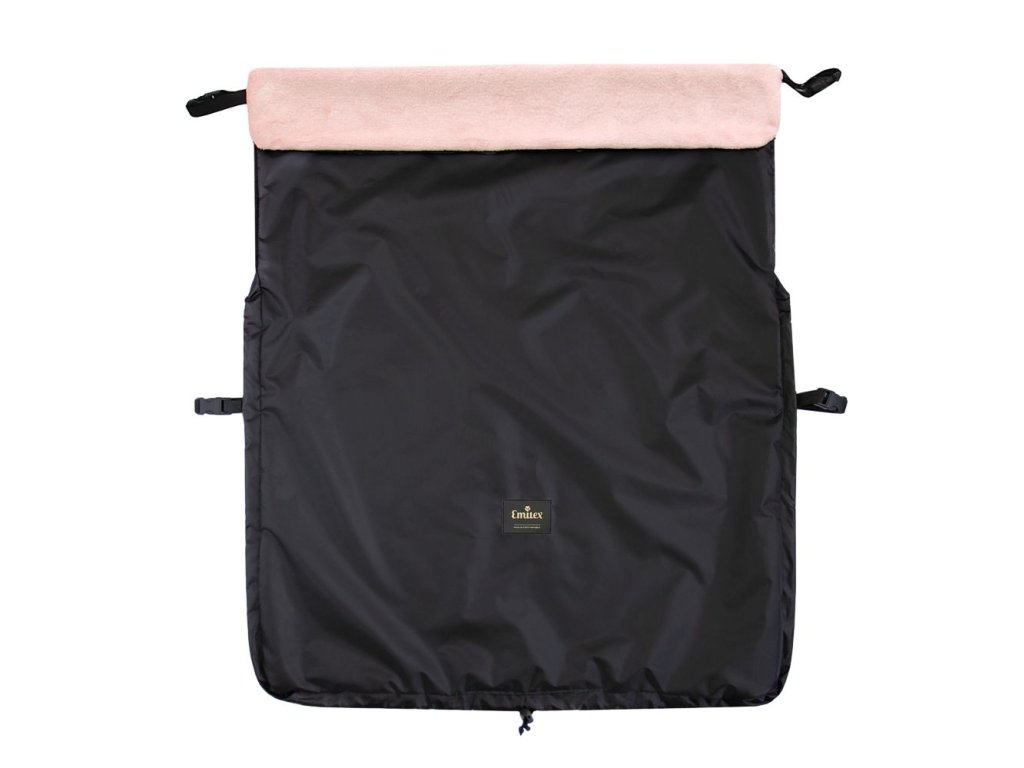 Praktické je uchycení ke kočárku pomocí elastické gumy se sponou, což umožňuje uchytit nánožník pevně na různých místech. Zatažením za šňůrku s brzdou se ve spodní části nánožníku vytvoří kapsa, ve které zůstanou nožičky dítěte v teple.