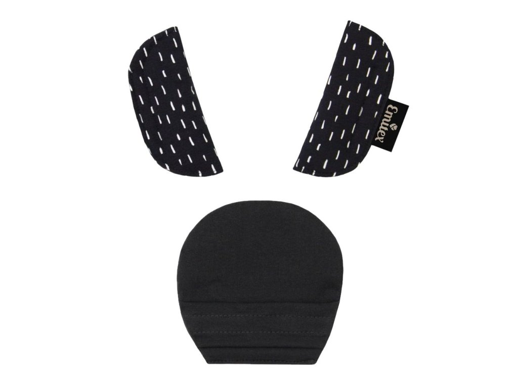 Použití vhodné jak v kočárku, tak v autosedačce. Ramenní polstrování mají suché zipy pro rychlé nasazení, větší polstrování se na sponu autosedačky navléká.