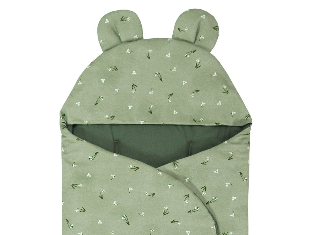 Designovým prvkem jsou roztomilá ouška, která dodají zavinovačce na atraktivnosti, a kapuce.