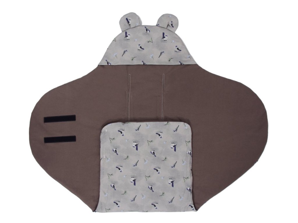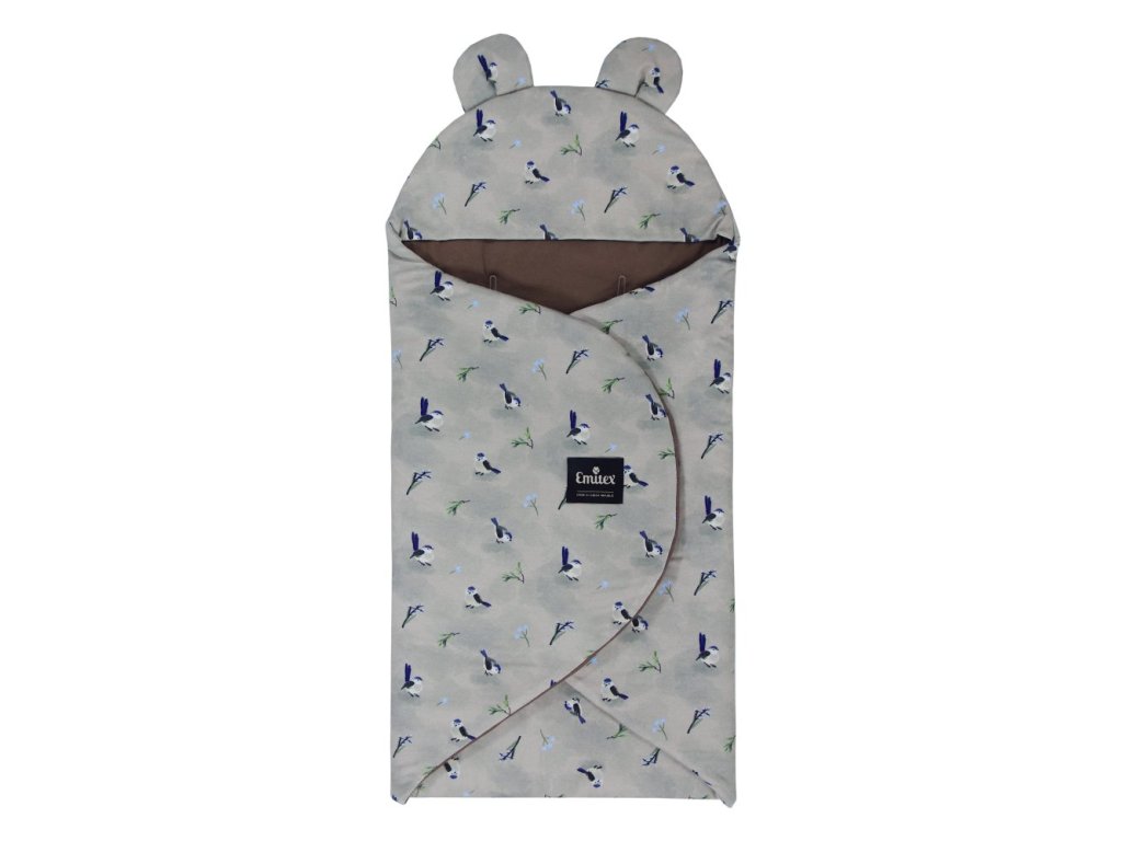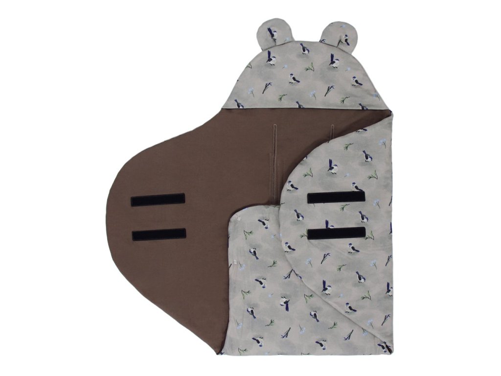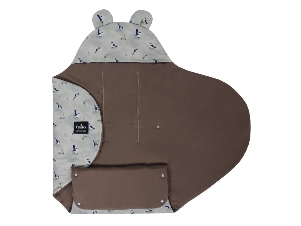 Designovým prvkem jsou roztomilá ouška, která dodají zavinovačce na atraktivnosti, a kapuce.