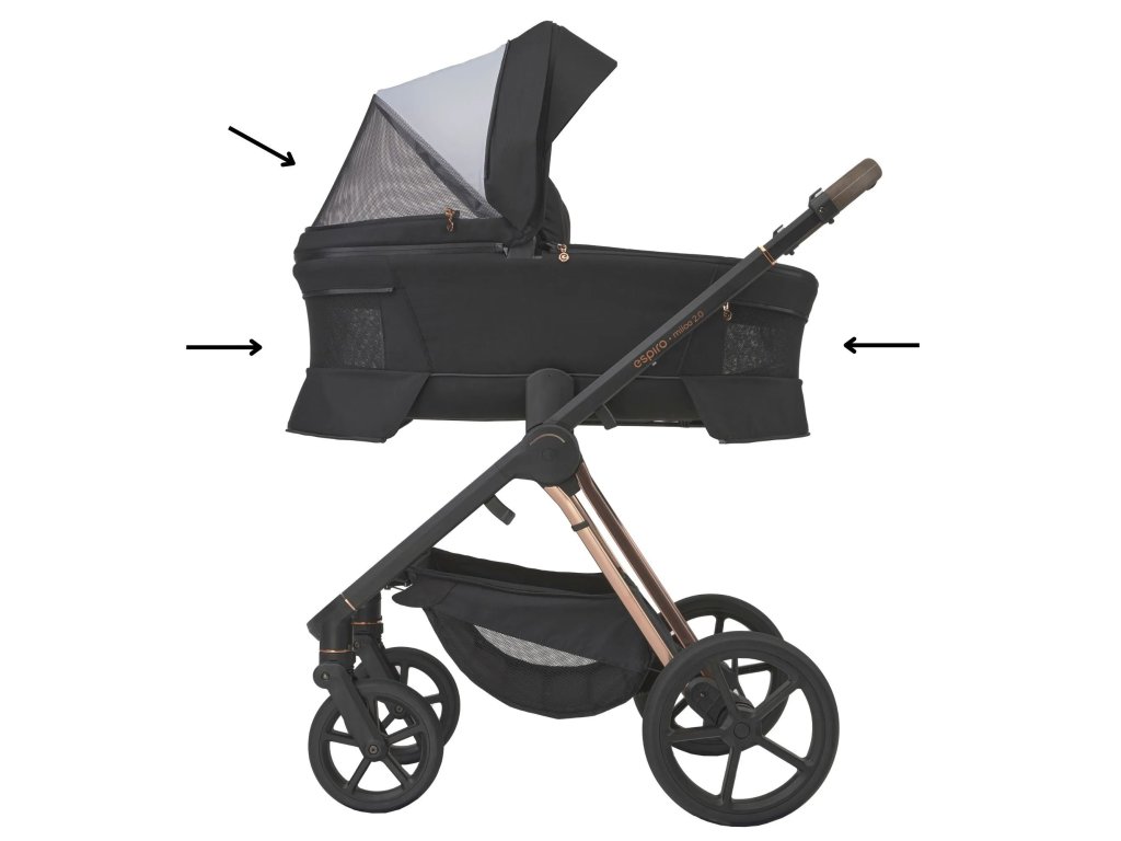 Espiro Miloo 2.0 se vyznačuje novým designem vodítek , a to jak z hlediska prošívání, tak i nové povrchové úpravy z ekokůže. Upravené nárazníky dále zajišťují vodítka, když je kočárek složen, a čtyřnásobný ventilační systém zajišťuje optimální cirkulaci vzduchu a pohodlí dítěte za všech podmínek.