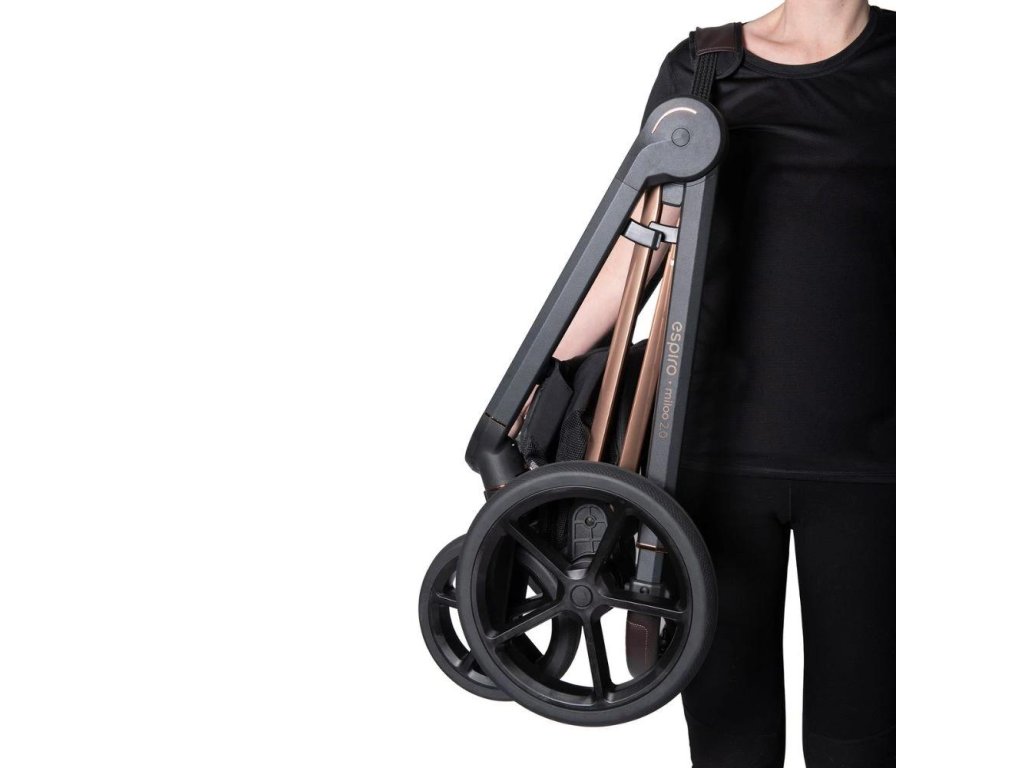 Kočárek espiro miloo 2.0 se vyznačuje novým, praktickým automatickým systémem uvolnění korbičky v rukojeti a paměťovými tlačítky na sedadle kočárku. Kočárek má také vylepšenou opěrku nohou, která dítěti poskytuje ještě větší pohodlí při procházkách.