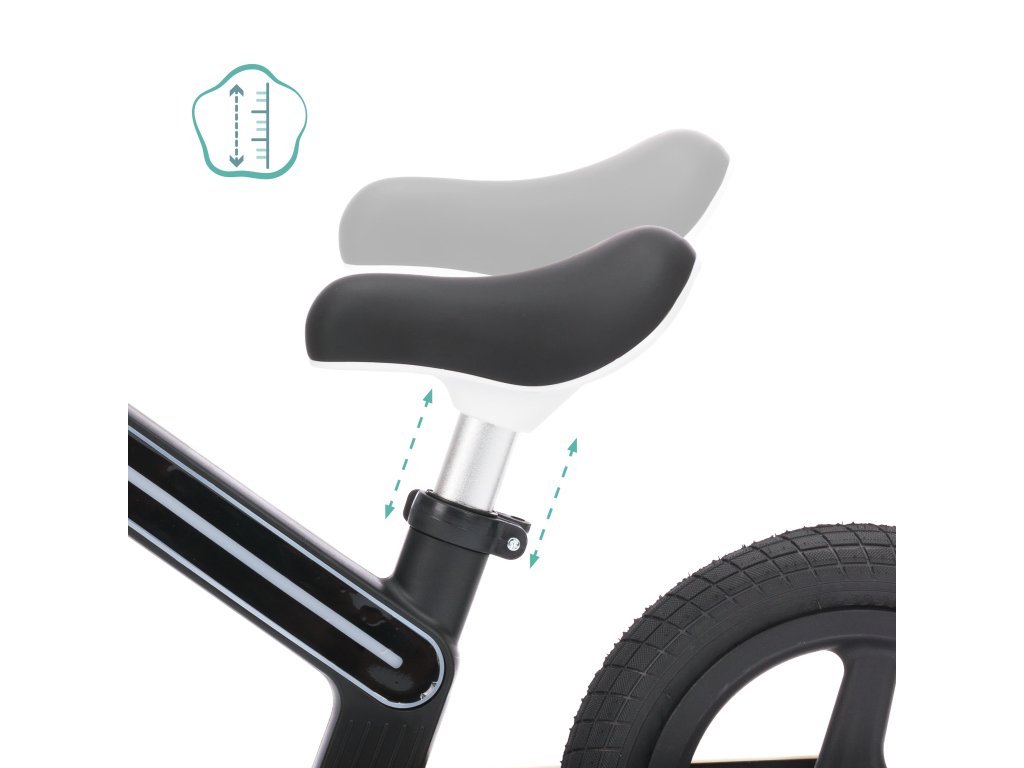 Výškově nastavitelná sedačka umožňuje, aby odrážedlo rostlo spolu s dítětem. Nafukovací kola si hravě poradí s každým terénem a zajišťují plynulou a stabilní jízdu. Odrážedlo není jen hračkou – je prvním krokem na cestě k samostatné a sebevědomé jízdě.