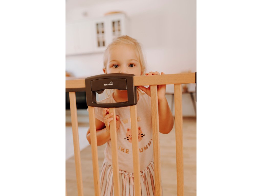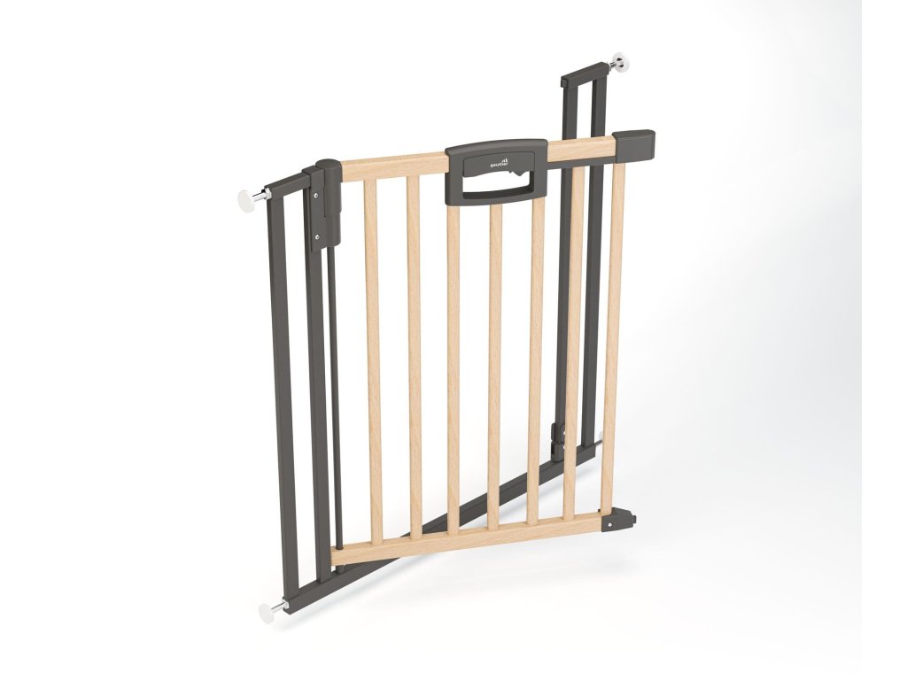 Zábrana je vhodná pro každodenní použití a různé šířky průchodu. Snadná a rychlá montáž bez vrtání. Vysoká ochrana dveří. Zábrana má dvoustupňové bezpečnostní zavírání, které dospělá osoba otevře jednou rukou. Dá se otevřít v obou směrech. V případě potřeby lze namontovat dveřní zarážku (součástí dodávky), díky které lze zábranu otevřít pouze jedním směrem. Od úhlu otevření cca 100° se otočná brána zaaretuje. Rukojeť je vyrobená z plastu, která se snadno čistí a dezinfikuje,