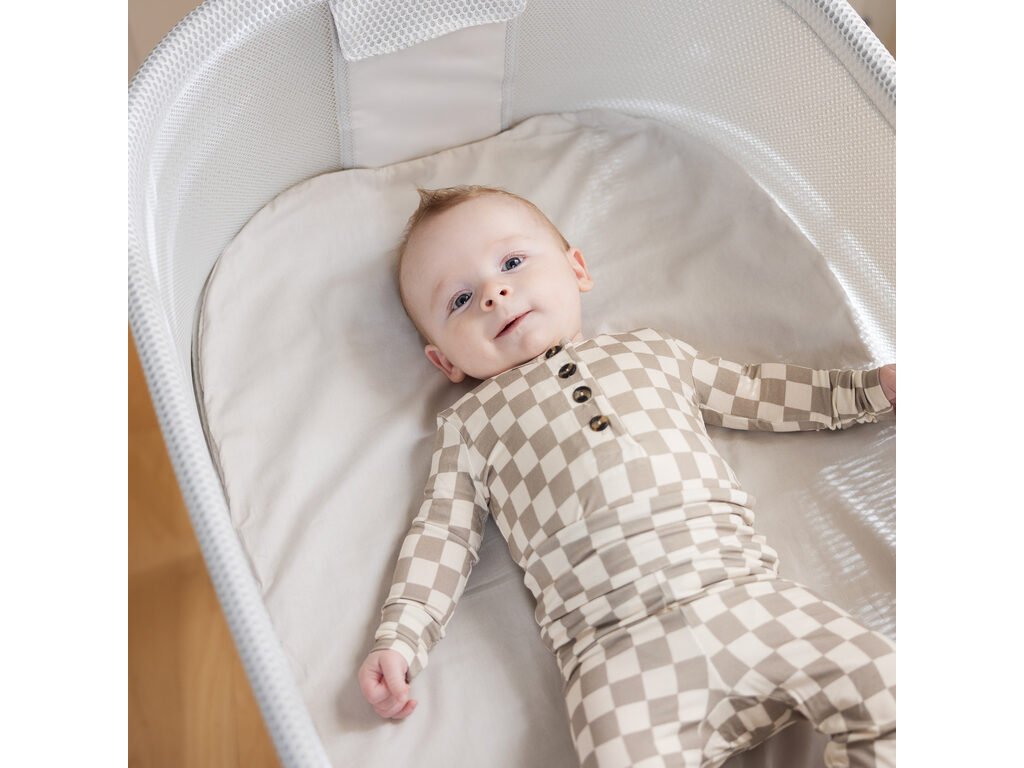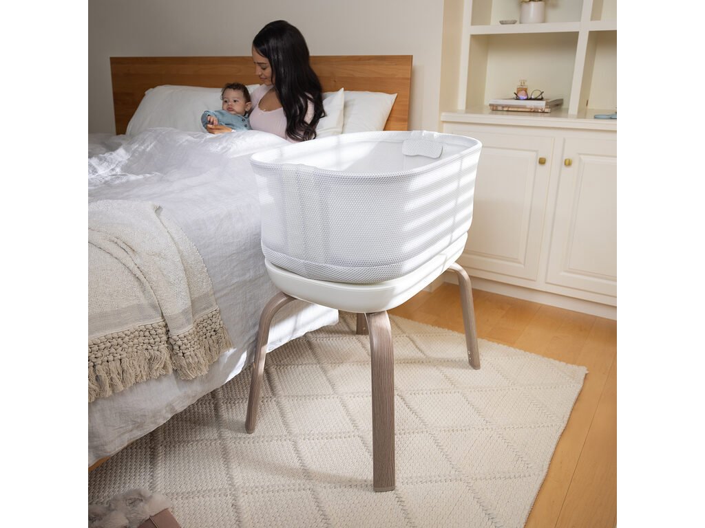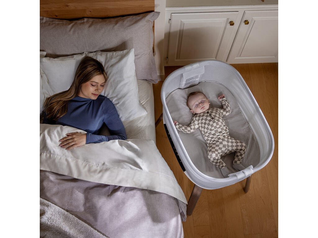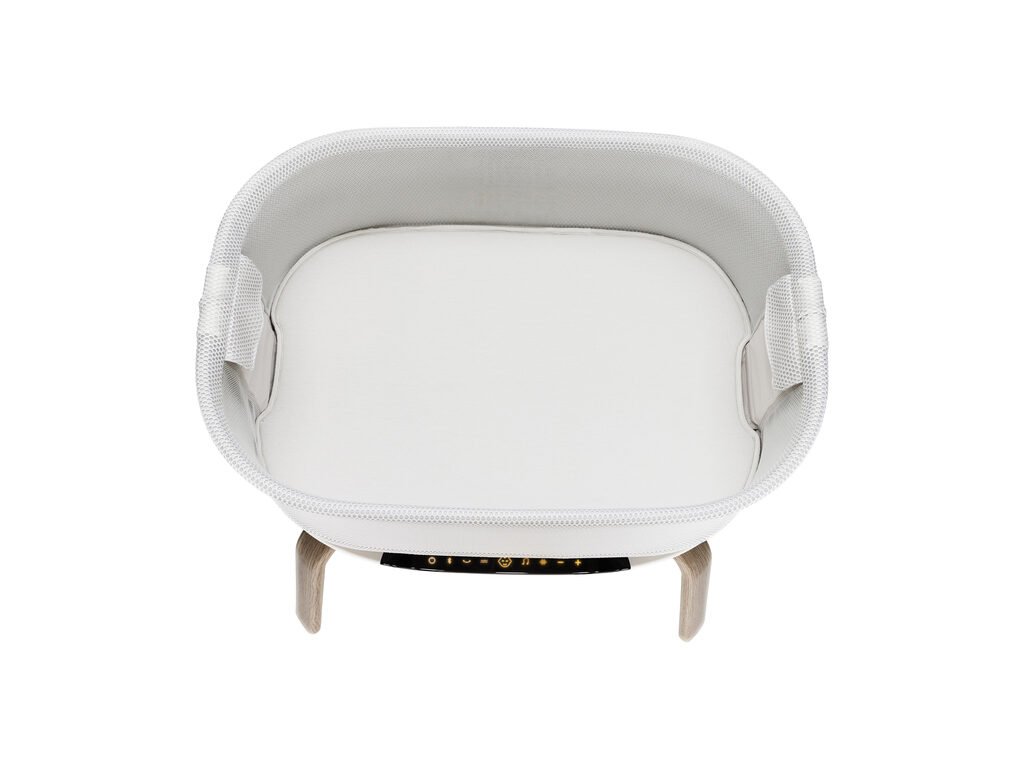 převratně chytrá postýlka, nabitá funkcemi včetně unikátní technologie Cry Detection Technology, která sama rozpozná pláč dítěte a okamžitě spustí uklidňující funkce pro rychlejší návrat ke spánku.