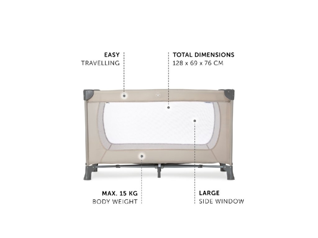 Ideální ke hře // Dokonalou zábavu zajistí postranní otvor, kterým může dítě prolézat sem a tam. Cestovní postýlka se tak přes den rázem promění v hrací centrum. V noci poslouží jako praktická přístavná postýlka v ložnici. Budete tak mít miminko vždy nablízku a můžete klidně spát.