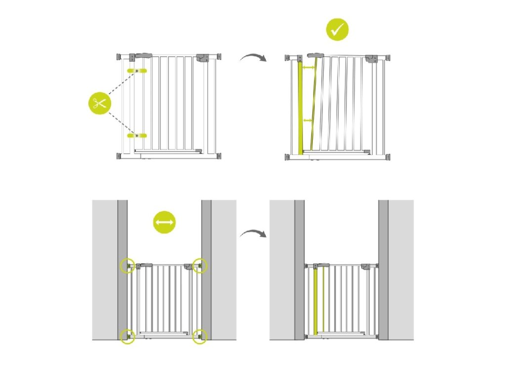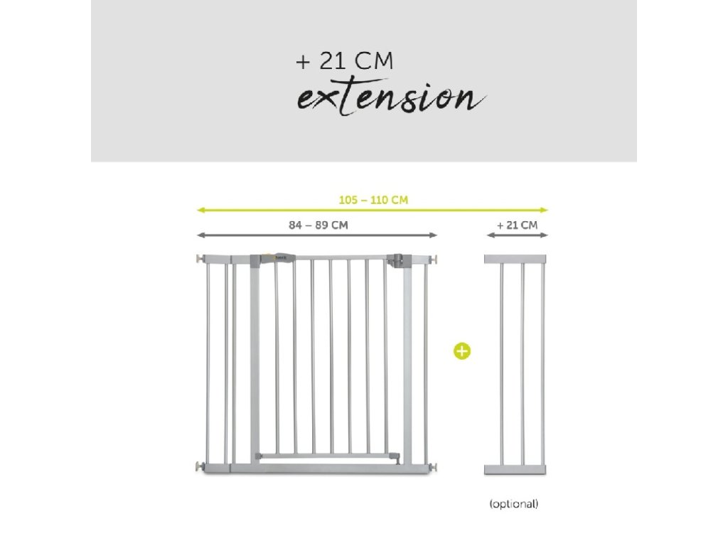 Kovovou zábranu Stop'n Safe 2 dodáváme již včetně prodloužení 21 cm a hodí se tak ideálně k zajištění dveří nebo schodů, případně průchodů se šířkou 96-101 cm. Pro užší průchody doporučujeme Stop'n Safe 2 vč. prodloužení se šířkou 9 cm (84-89 cm), případně na standardní rozměry Stop'n Safe 2 (75-80 cm).