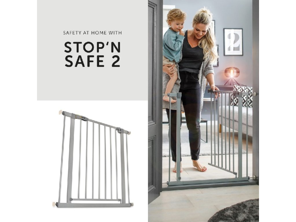 Kovová zábrana se napne pomocí fixačních šroubů mezi zárubně dveří, stěny nebo zábradlí schodů. Nemusí se přivrtávat. Dospělí projdou dvířky se šířkou 50 cm, které lze otevřít pomocí jedné ruky v obou směrech. Druhá ruka tak může zůstat volná pro Vaši milou ratolest. Stop'n Safe 2 má manuální uzavíratelný mechanismus s dvojitou pojistkou. Tento systém tak zamezuje, aby byla zábrana nekontrolovatelně otevřena dětskými ručičkami.