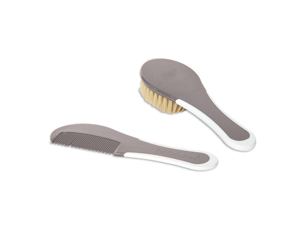Praktická sada pro péči o vlásky novorozenců a miminek. Na rozdíl od jiných kartáčů vyrobených z tvrdého silonu má kartáč od Bébé-Jou měkký přírodní vlas nedráždící jemnou pokožku dětské hlavičky. Hřeben je ergonomicky tvarován a díky zakulaceným špičkám zubů nemůže poškrábat při česání. Snadno se udržuje v čistotě umytím v teplé vodě s trochou mýdla.