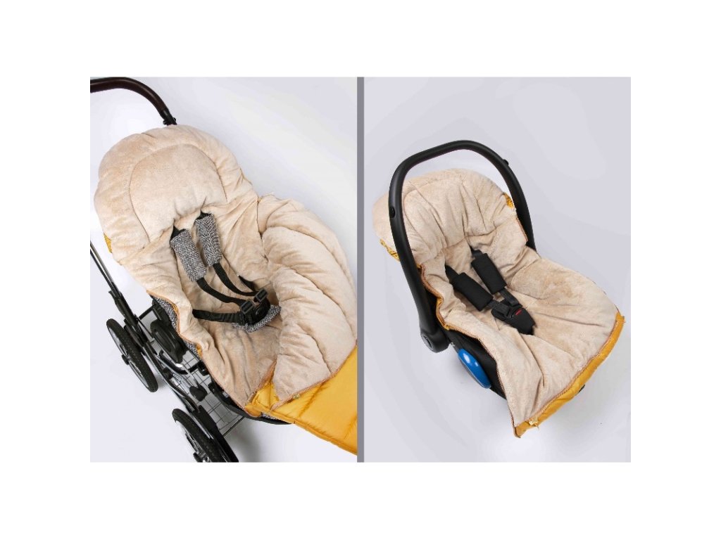 Tento výrobek lze doplnit o rukávník a kožíšek na kočárek ve stejné barvě kožešiny.