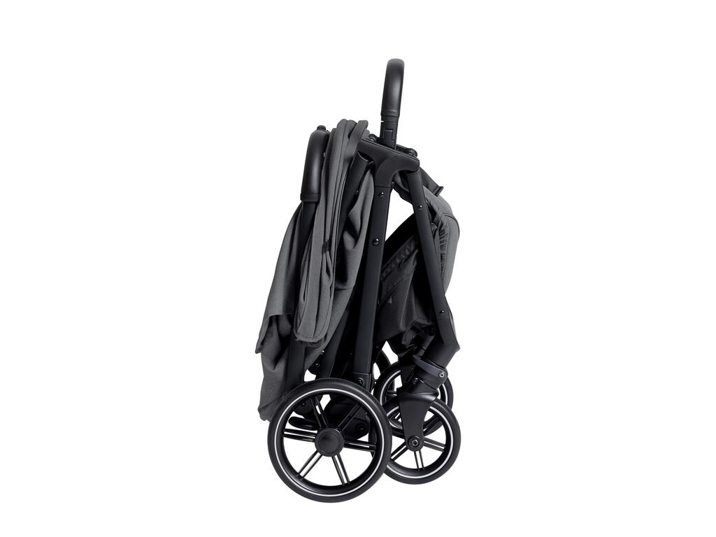 Skládání jednou rukou je rychlé a výsledný balík zůstane po složení samostatně stát. Nízká hmotnost usnadňuje manipulaci, přenášení i ukládání do auta. Součástí výbavy je také praktická taška pro snadný transport kočárku, pláštěnka a adaptéry pro nasazení autosedačky. Přední otočná kola s nadprůměrnými rozměry a spolehlivou aretací zvládnou i náročnější povrch a velký košík pohodlně pojme všechny potřebné věci.