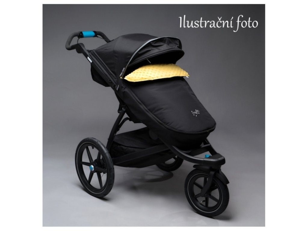 Pokud u Thule využijete stuhu, můžete nánožník uvázat za kloub stříšky a nebo za poutko na zádové opěrce. Nánožník bude tak těsněji obepínat kočárek.