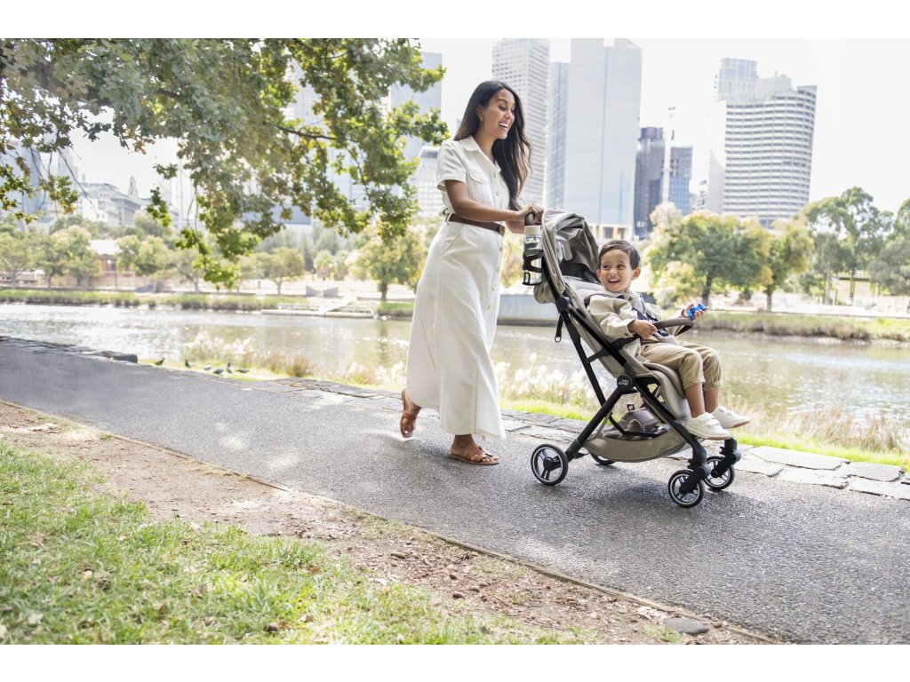 Každý den je jiný – a FLYLITE se přizpůsobí. Díky plynule nastavitelné opěrce zad a polohovatelné opěrce nohou si dítě může kdykoliv odpočinout nebo naopak pozorovat okolí. Jednoruční polohování umožní úpravy i během chůze. Odnímatelné madlo usnadní nastupování a vystupování a 5bodový bezpečnostní pás zajistí bezpečnou jízdu.