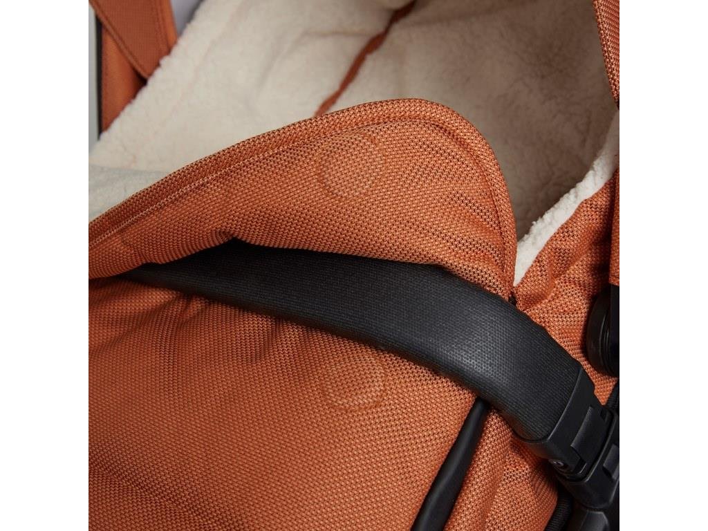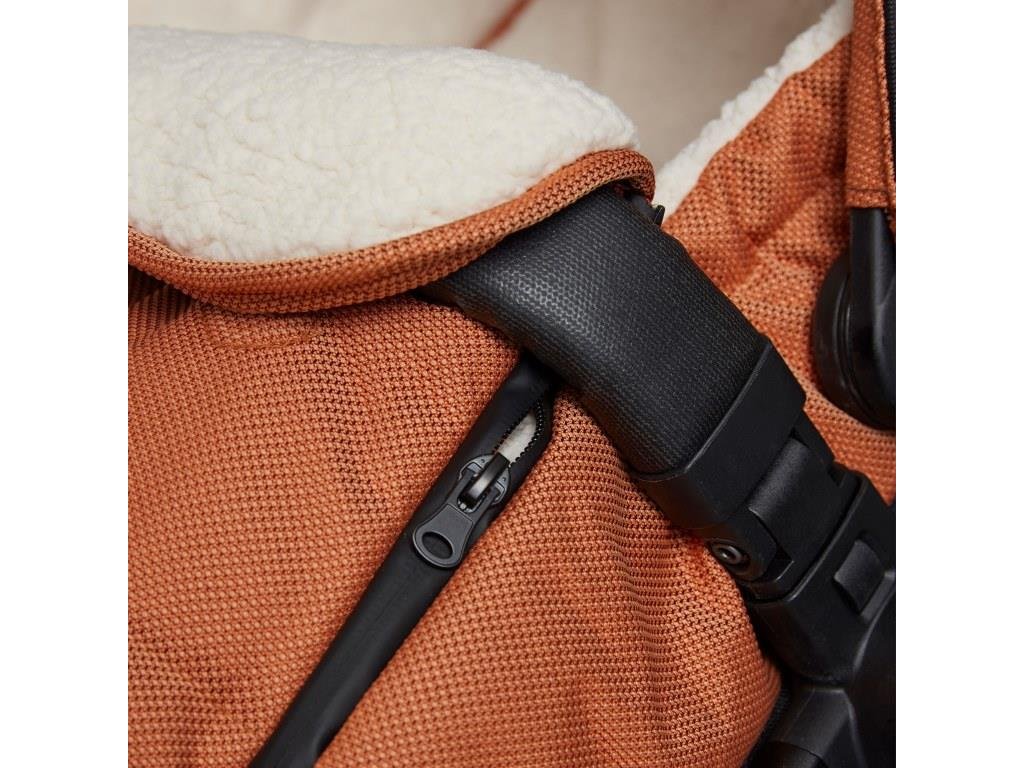 Uvnitř je fusáček zateplený plyšovou podšívkou. Horní část fusáčku může být otevřena díky zipu kolem dokola. V zadní části je fusáček opatřen otvory pro protažení výškově nastavitelných 5ti bodových pásů sportovní sedačky. U hlavičky je fusáček zatahovací. Přední část je možné také překlopit přes madýlko kočárku. V koordinovaných barvách kočárku Koelstra Next.