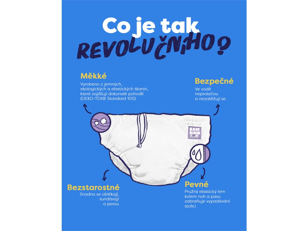 Většina plaveckých bazénů trvá na tom, aby se v bazénu malá miminka nekoupala z hygienických důvodů nahá. Obyčejné plavky nenabízejí žádnou ochranu a jednorázové plenky udržují vodu a tím pádem převažují plenku dolů. Kalhotky na koupání nabízejí oproti obyčejným plavečkám a plenkám vhodné řešení. Mají totiž vnitřní vodotěsnou vrstvu, která nepropouští pevnou hmotu ani okolo nožiček a ani okolo pasu. A tak případná nehoda nezanechá v bazénu žádné pozůstatky.