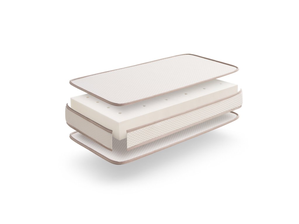 Matrace obsahuje paměťovou pěnu, která se přizpůsobí tělu spícího dítěte a uvolňuje body na které při spánku vzniká tlak.