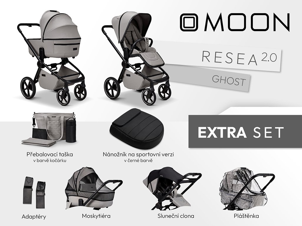 Moon Kombinovaný Kočárek Resea 2.0 Extra set - GHOST