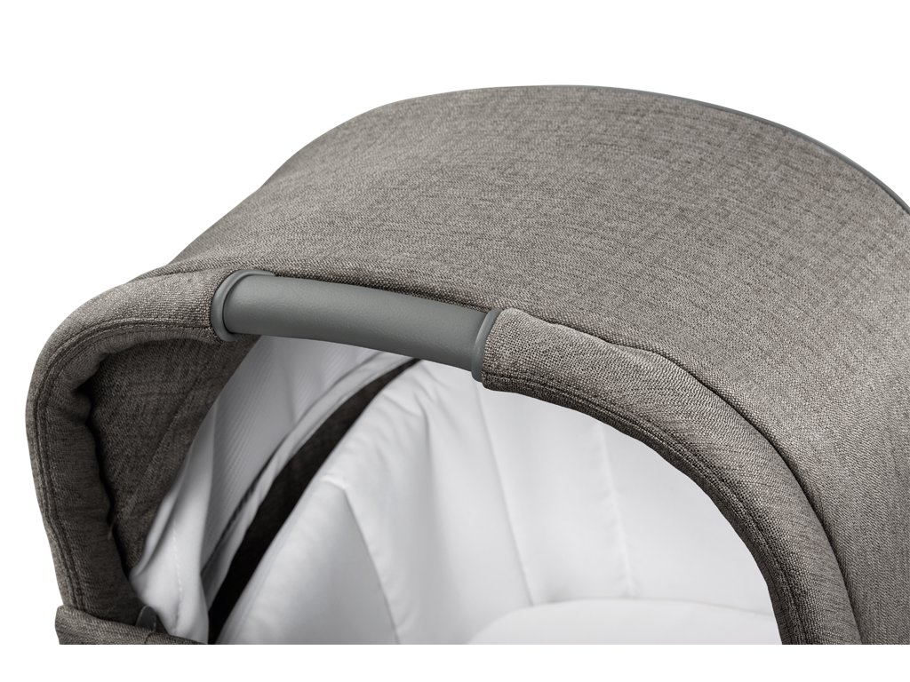 Pomocí vestavěného madla na nošení v eco-kůži můžete nastavit stříšku pouze jednou rukou. A pokud dítěti potřebujete zajistit rozptýlení, můžete za madlo pověsit malou hračku.