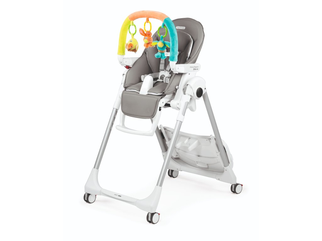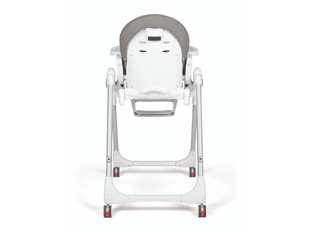 Díky 4 kolečkům lze židličku snadno přemisťovat po vaší domácnosti. Celou židličku lze výškově nastavit do 7 pozic, její opěrka nohou je nastavitelná do 3 pozic a zádová opěrka do 5 pozic (více než 150 °). Dvojitý polohovatelný a odnímatelný tácek s držákem na láhev je vhodný i do myčky na nádobí a ve spodní části je opatřený bezpečnostní přepážkou, která zabraňuje vyklouznutí dítěte z židličky. Ve složeném stavu stojí samostatně a zabírá málo místa.