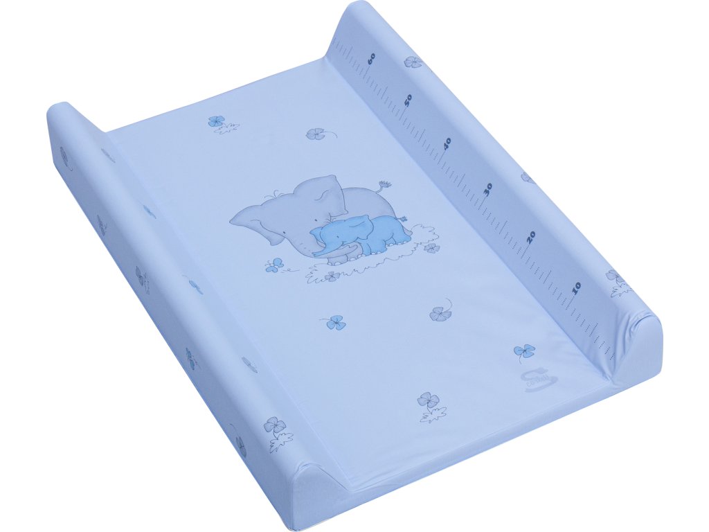 Přebalovací podložka s pevnou vložkou z MDF a profilovanými okraji s kvalitním PVC potahem bez ftalátů, vyplněná molitanem.