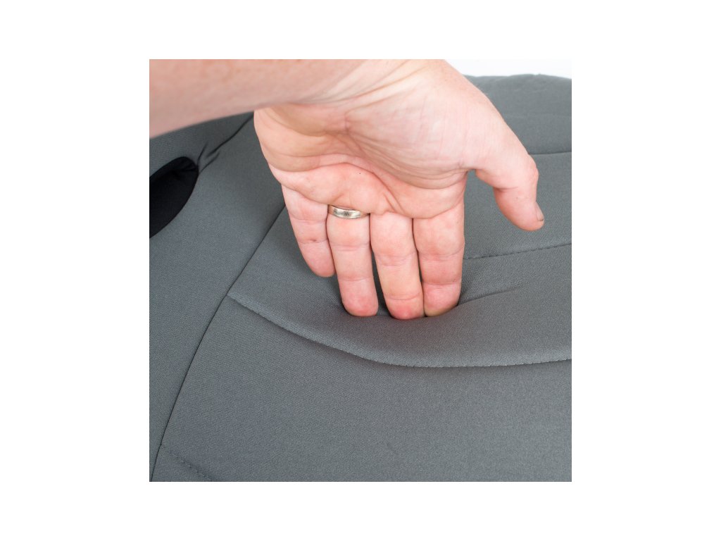 Podsedák je bohatě a měkce vypolstrován, pro maximální pohodlí je uvnitř 3 cm silná pěna. Velmi příjemné jsou i široké opěrky rukou, zároveň je díky nim vždy bezpečnostní pás na svém místě!