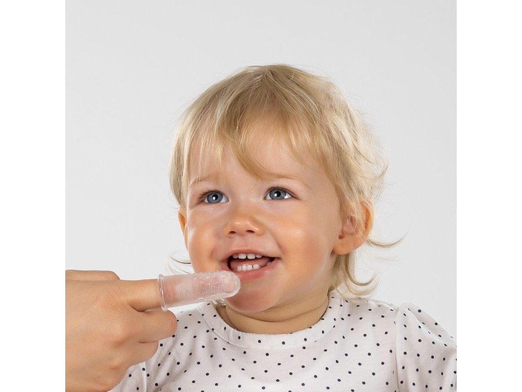 Péče o zuby by měla začít ještě předtím, než se dítěti vyklubou první zuby. Dítě si tak již v útlém věku zvykne na pravidelnou denní péči a navíc tím rodiče napomáhají zabraňovat přenosu bakterií v ústech dítěte a chrání jeho citlivé mléčné zuby před kazy. Speciálně vyvinutý prstový kartáček na zuby zajišťuje obzvláště jemné čištění citlivé oblasti v ústech.