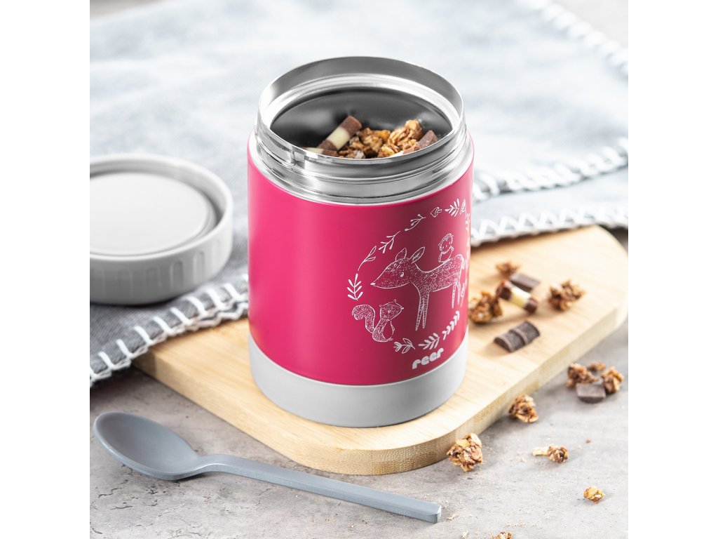 Jakmile vaše dítě vyroste z dětských kaší, můžete do termosky bezpečně uložit např. obiloviny, ořechy nebo sušenky a bez obav vyrazit na výlet. Během teplých dní zůstává ovoce a zelenina v termosce příjemně chladná a svěží po dlouhou dobu.
