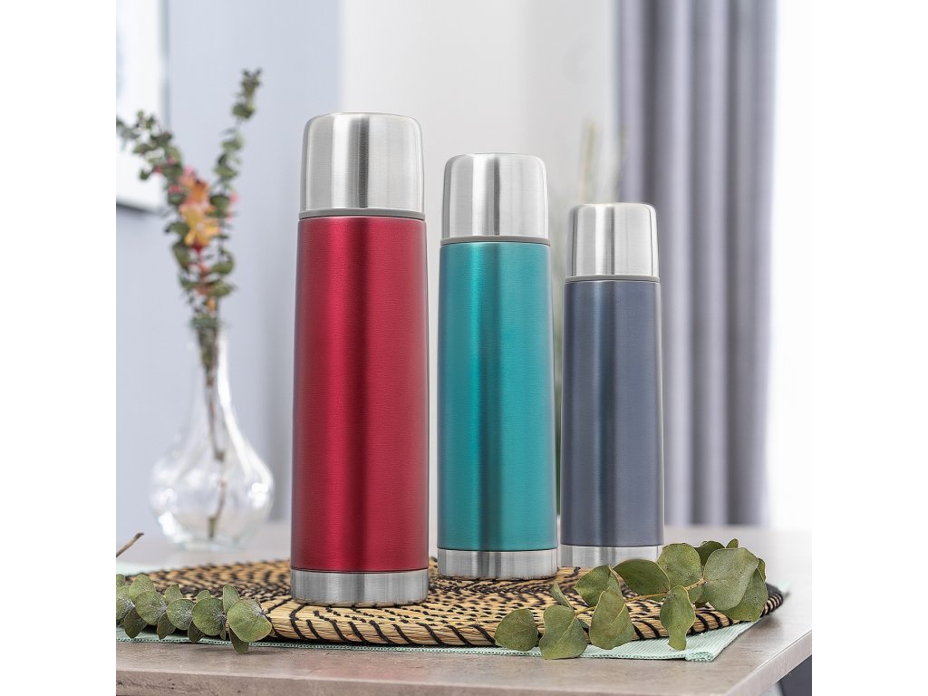 Termoska Colour má dvojitou stěnu, která dokáže udržet teplotu horké vody až po dobu 12 hodin a zároveň zabraňuje přílišnému zahřátí vnější stěny.