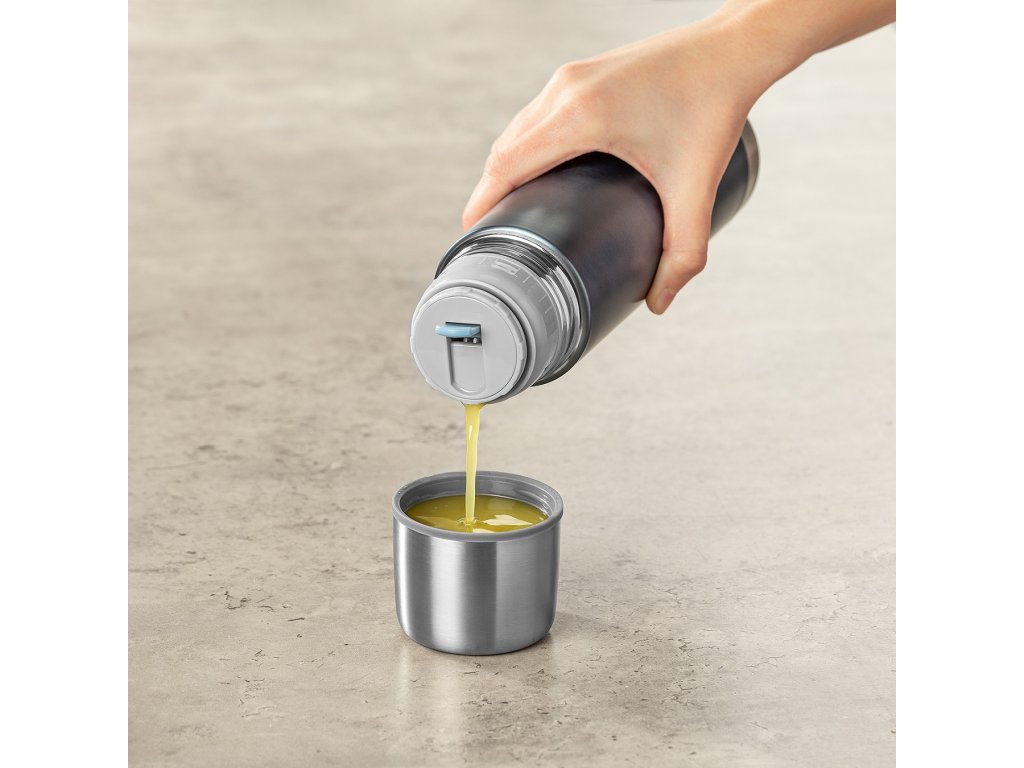 Díky nově vyvinutému uzávěru lze termosku otevřít pouze jednou rukou. Stačí jen vyklopit páčku ve víku nahoru a můžete začít nalévat. Pod víčkem se skrývá 4,5 cm široký otvor pro snadné plnění termosky nejen nápoji, ale třeba i krájeným čerstvým ovocem nebo zeleninou. Po použití lze termosku snadno očistit a zajistit tak hygienicky čisté používání po dlouhou dobu.