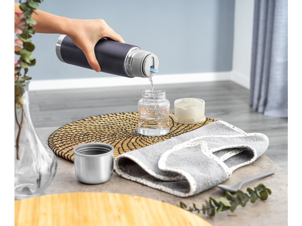 Když na vaše dítě přijde hlad, chce nakrmit co nejrychleji. K tomu potřebujete kojeneckou výživu, láhev a v neposlední řadě dostatečně teplou vodu. S tím posledním vám skvěle pomůže nová termoska. Ať už jste zrovna na procházce uprostřed parku nebo stojíte o půlnoci v polospánku uprostřed kuchyně, tato termoska udrží teplou vodu po dobu několika hodin a umožňuje vám tak připravit jídlo rychle a bez obav.