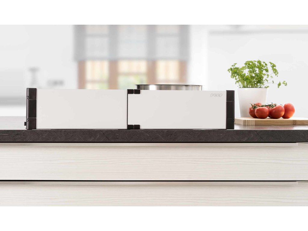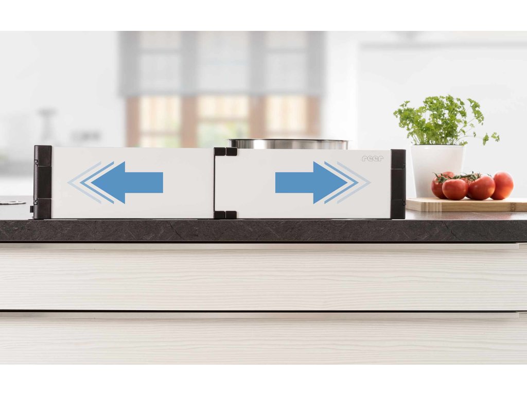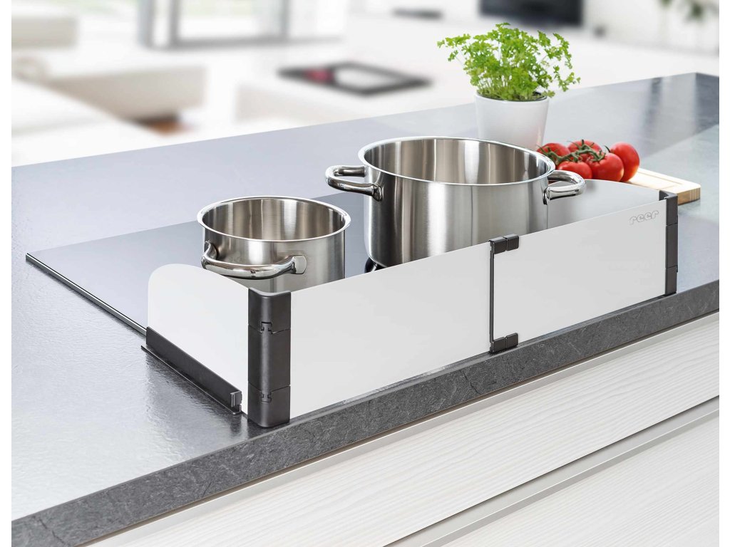 Ochranu sporáku lze použít na elektrickém i indukčním sporáku. Ochranná zábrana sporáku se díky své nastavitelné šířce v rozmezí 55 - 61 cm plynule přizpůsobí velikosti vaší varné plochy. Přídržné lišty pro záštitu sporáku jsou připevněny přímo na kuchyňskou desku speciální lepicí páskou, takže ji lze pohodlně připevnit na jakoukoli pracovní desku bez ohledu na povrchový materiál a tloušťku pracovní desky.