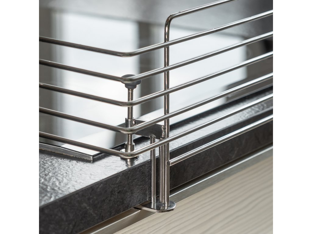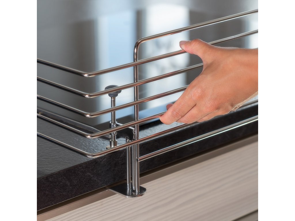 Ochranný kryt sporáku se připevňuje ke kuchyňské desce pomocí šroubovacích svorek. Díky praktickému uchycení pomocí svorky lze mřížku namontovat bez vrtání a šroubů. Umožňuje rychlou a snadnou montáž bez poškození pracovní desky. Je vhodný pro všechny panely o tloušťce 15 - 48 mm.