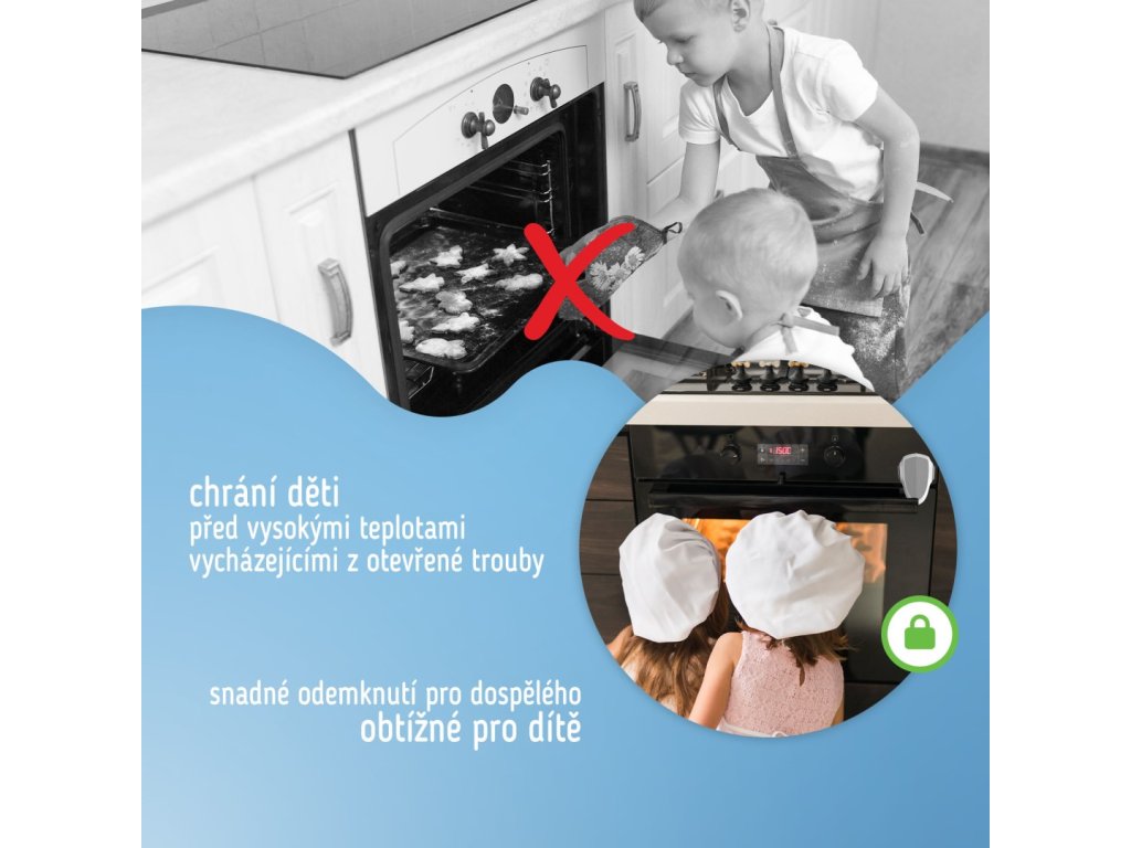 Děti rády doma zažívají dobrodružství, ale kuchyň může být nebezpečné místo. Sipo dětský zámek na dvířka trouby brání dětem v otevření dvířek a tím předchází možnému nebezpečí.