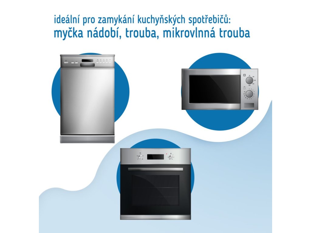 Ochranu lze použít jako zámek proti otevření dvířek trouby, skříněk, jako zámek na mikrovlnné trouby, myčky nádobí, pračky nebo jiné vybavení.
