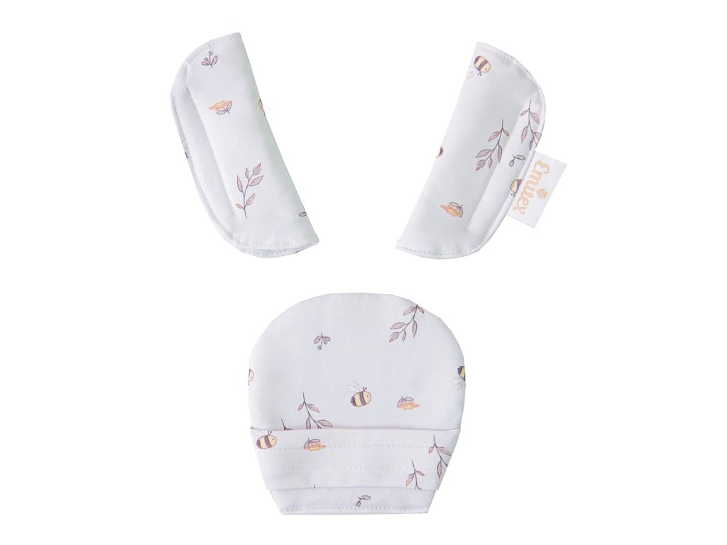 Souprava polstrování se skládá ze 3 dílů - většího polstrování pod sponu a polstrování na dva pásy. Je vyrobeno z příjemného, měkkého materiálu. Použitím polstrování se stanou pásy pro dítě příjemně měkké a přestane jej tlačit tvrdá spona.