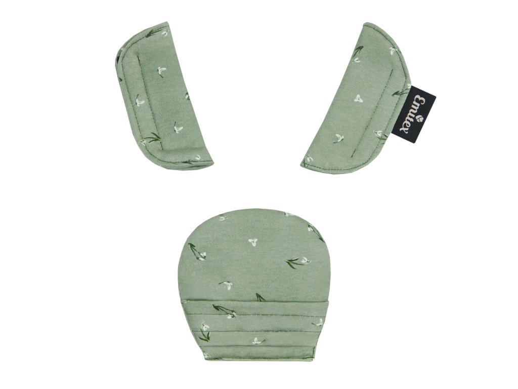 Použití vhodné jak v kočárku, tak v autosedačce. Ramenní polstrování mají suché zipy pro rychlé nasazení, větší polstrování se na sponu autosedačky navléká.