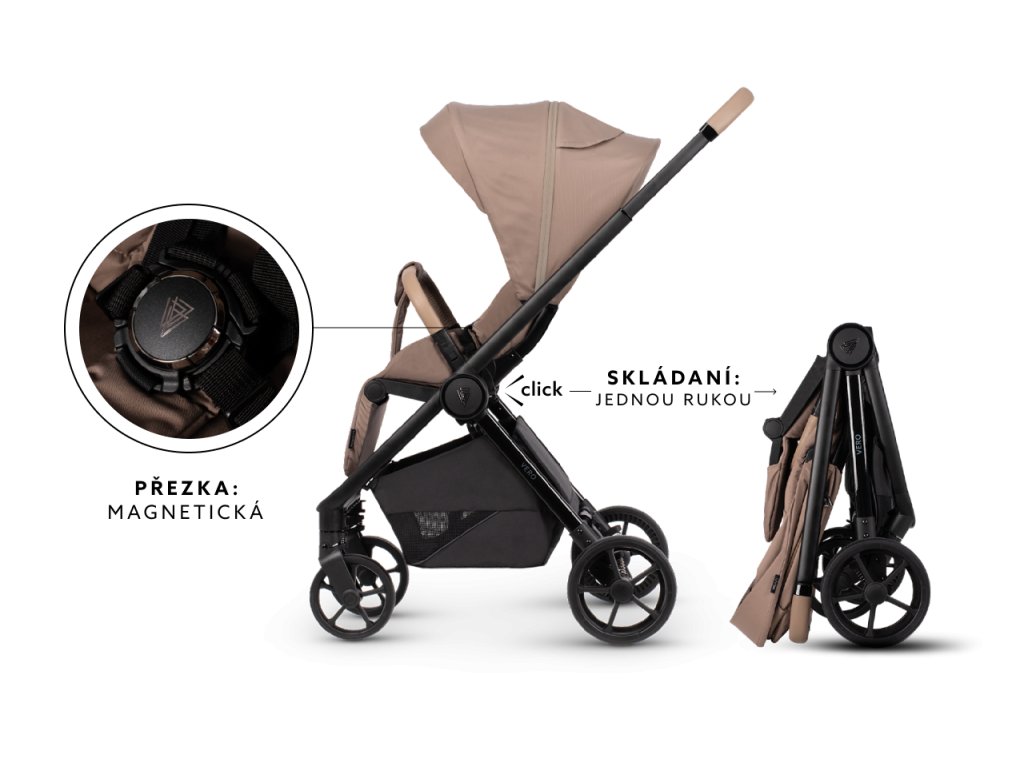 - To však není konec promyšlených řešení u Venicci Vero, kočárek vám může sloužit až do chvíle, kdy dítě dosáhne hmotnosti 22 kilogramů. Pozornost si zasluhuje magnetický uzávěr pásů s luxusním designem. Na rám jsme také umístili popruh pro ještě pohodlnější přenášení kočárku. Nově tvarovaná brzda kočárku vám umožní ještě pohodlněji pečovat o bezpečnost dítěte.