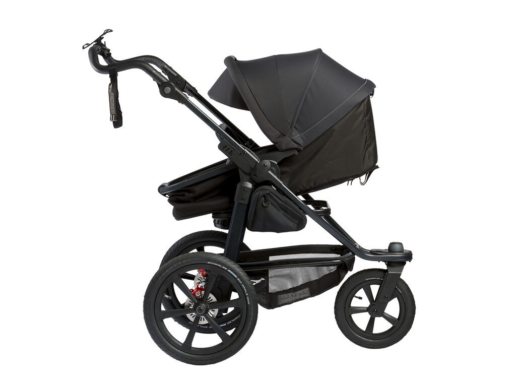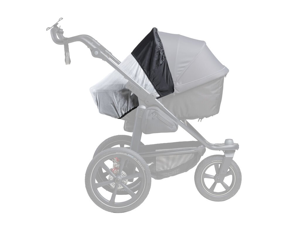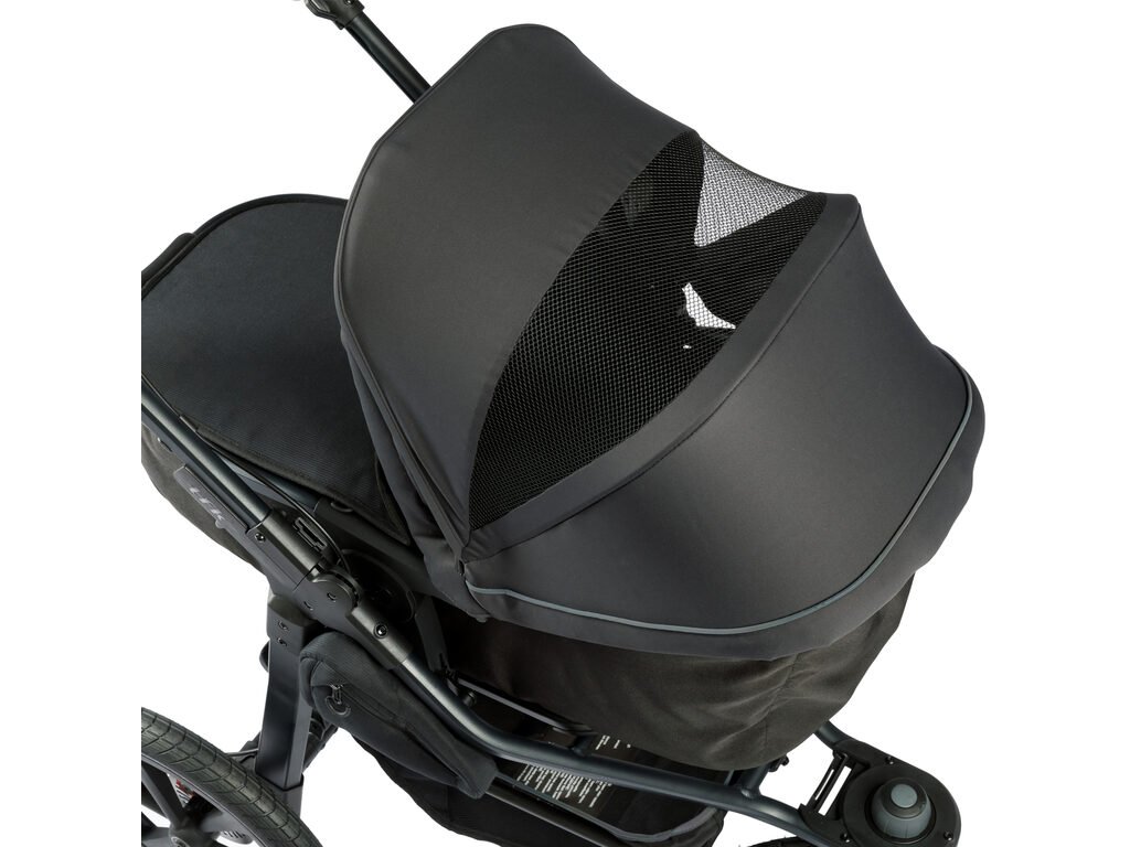 Korbičku lze používat v obou směrech jízdy a lze ji prodloužit o přídavnou podnožku. Stříška je vybavena velkým větracím okénkem a je vyrobena z vodoodpudivého materiálu.